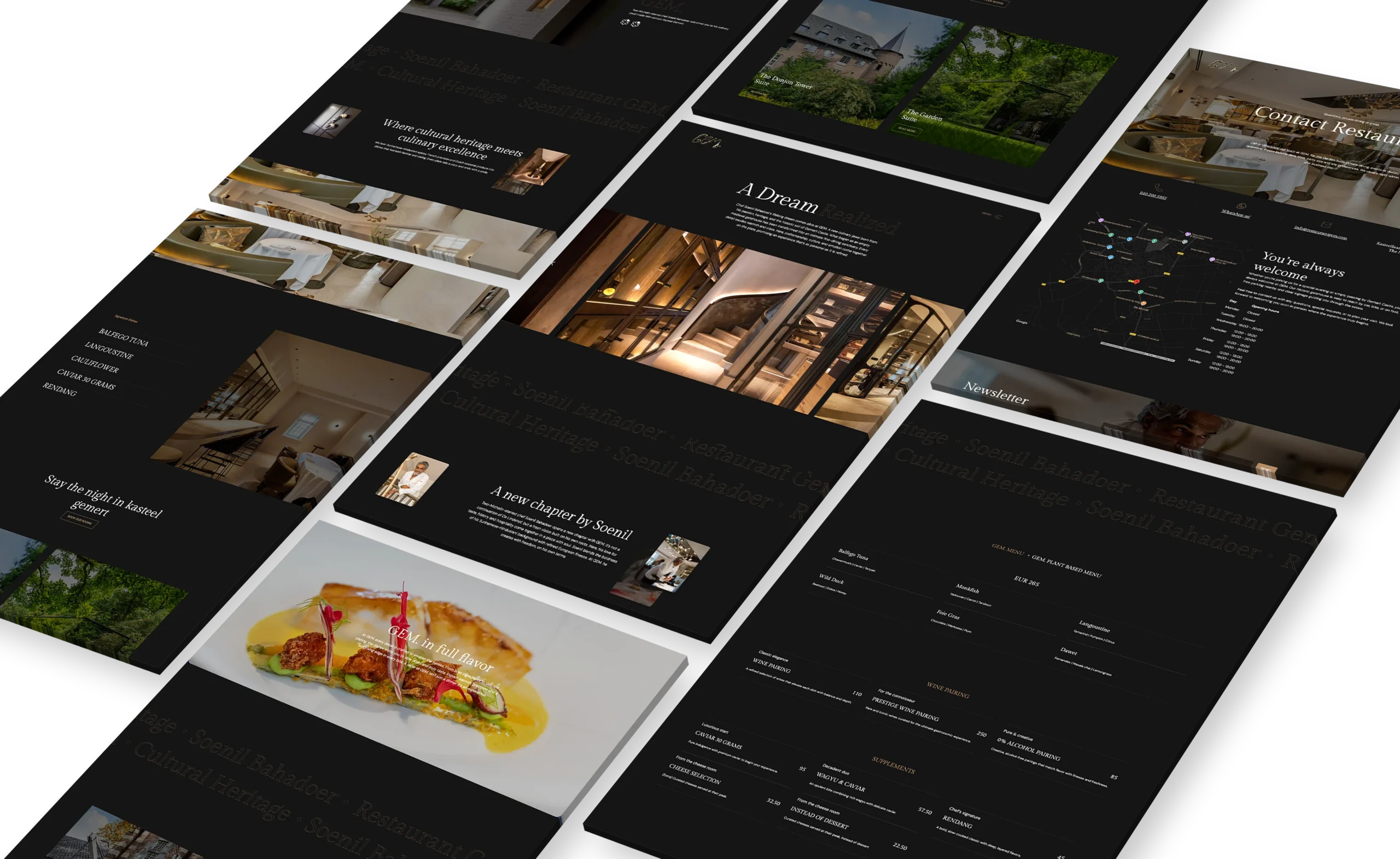 De opdracht voor Restaurant GEM was meer dan een simpel project; het was de digitale vertaling van een complete gastronomische beleving. De online ervaring moest de kernwaarden van het restaurant rust, finesse en kracht perfect weerspiegelen. Het moest een naadloze extensie worden van de sfeer in het monumentale Kasteel Gemert en de culinaire visie van tweesterrenchef Soenil Bahadoer, wiens gerechten een dialoog vormen tussen zijn Surinaams-Hindoestaanse erfgoed, ervaring en klassieke Franse technieken.