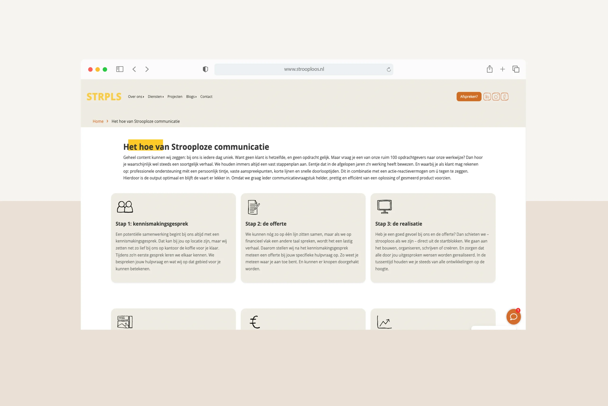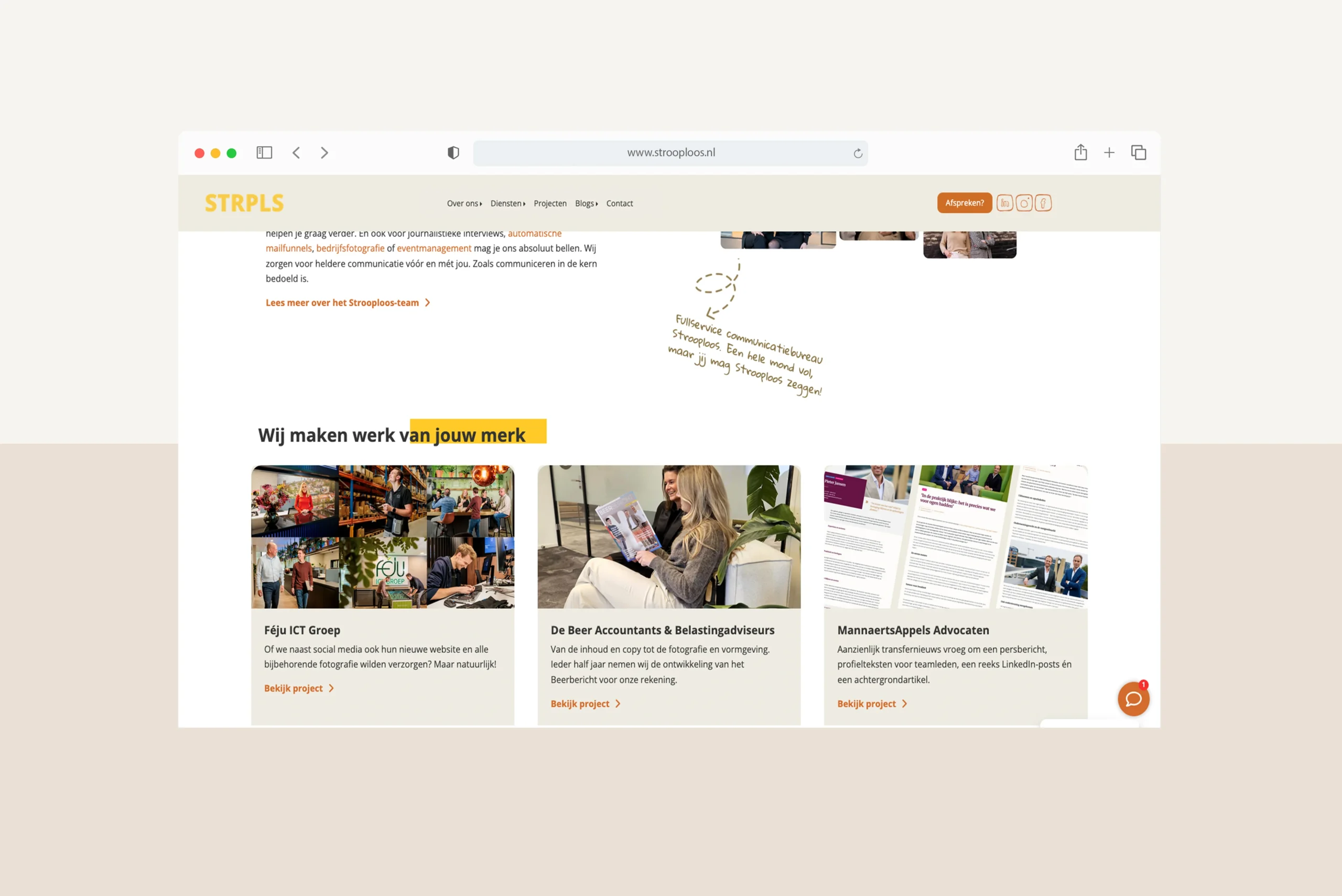De dames bij Strooploos zijn sterk in het ontwikkelen van een merk en communicatie. Wij nemen alle hosting en complexere techniek uit handen zodat zij vooruit kunnen met de inhoud. Het resultaat is een soepele samenwerking in driehoeksverband: Strooploos, ons team en de eindklant werken als één team aan projecten die verschil maken.
